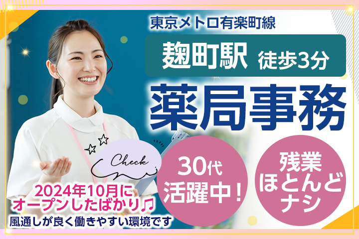 東京麹町薬局の求人/千代田区/調剤事務/紹介予定派遣