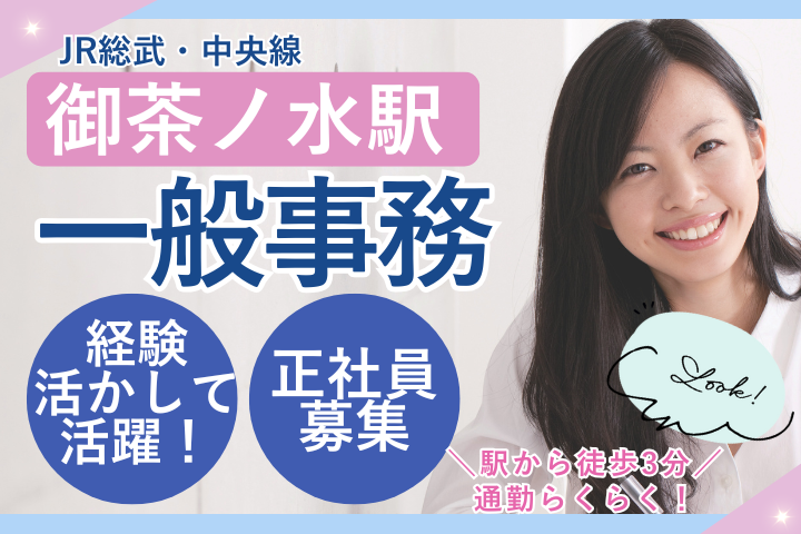 御茶ノ水駅徒歩3分*経験者歓迎*総務・庶務事務/賞与年2回&正社員で安定勤務!