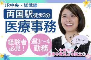 JR両国駅から徒歩3分!短時間・高時給で無理なく働ける医療事務★扶養枠もOK・午後は自由時間♪