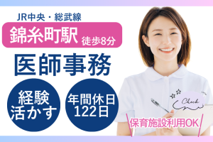 《錦糸町駅徒歩8分》医師事務作業補助/経験者歓迎*福利厚生充実*年間休日122日