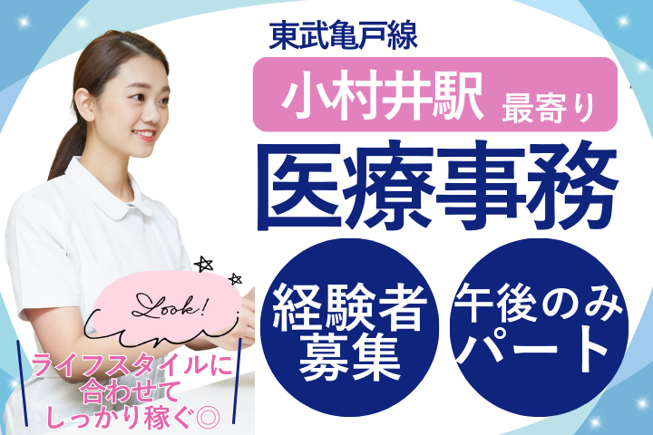 《小村井駅徒歩7分》夕方のみ3時間勤務!子育て世代も活躍中◎医療事務経験を活かせるパート募集