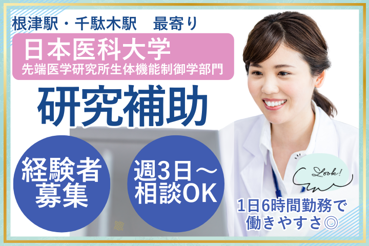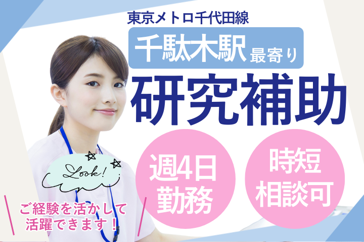 【千駄木駅徒歩7分】時短・週4日もOK!大学病院で研究補助◎経験を活かして無理なく働ける♪