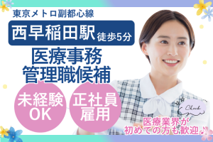【西早稲田駅徒歩5分】未経験から始める医療事務/高給与&正社員★駅チカで通勤便利!