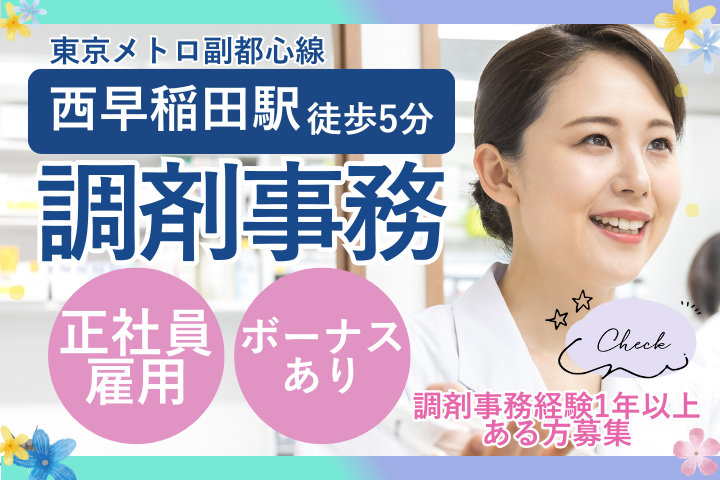 あつみ薬品株式会社 あつみ薬局 早稲田店の求人/新宿区/調剤事務/正社員