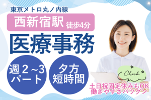 【西新宿駅4分】未経験OK!夕方から短時間◎クリニック医療事務*時給1600円・交通費全額支給