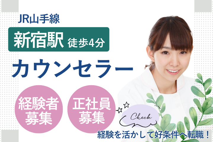 【新宿駅徒歩4分】経験活かして活躍できるカウンセラー*年間休日120日&残業ほぼなし◎賞与ありの正社員募集!
