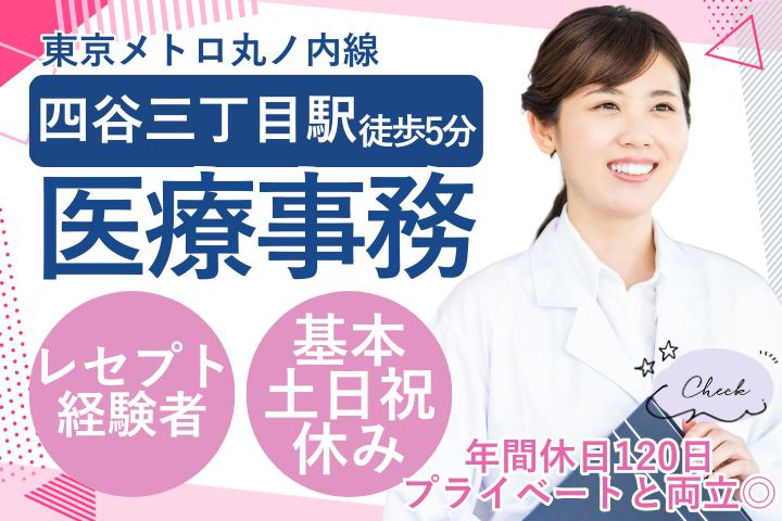 【新宿区】未経験から月給23万円・賞与3ヶ月★駅チカクリニックの医療事務/残業ほぼなし