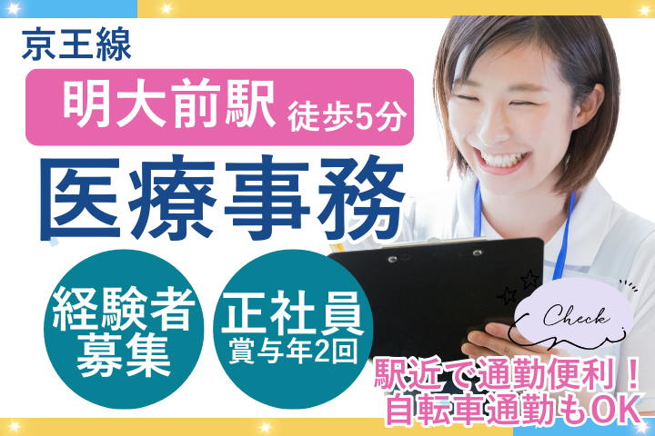 【明大前駅徒歩5分】経験活かせる医療事務*日祝休み・賞与あり*正社員募集