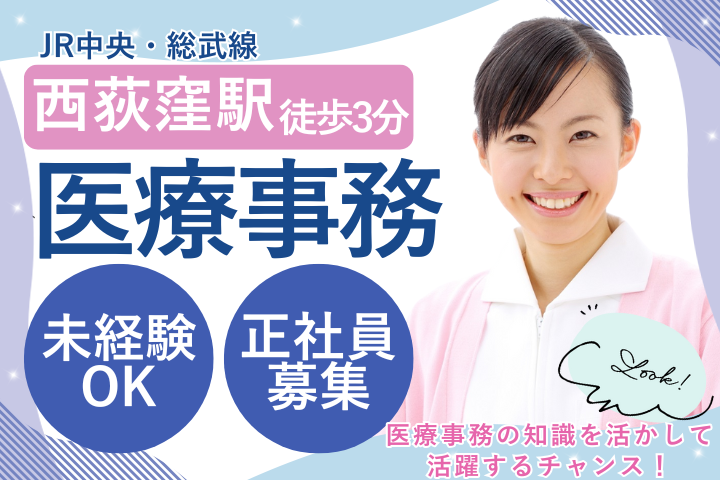【荻窪駅徒歩1分】無資格・未経験OK!正社員医療事務★残業少なめ&休みも充実/賞与年2回