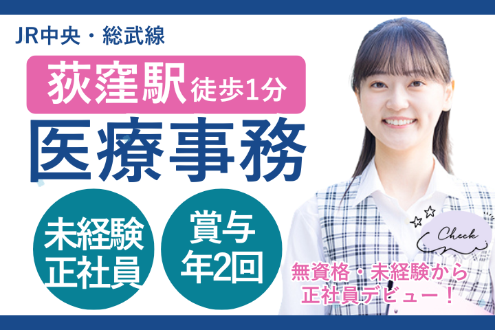 【荻窪駅徒歩1分】無資格・未経験OK!正社員医療事務★残業少なめ&休みも充実/賞与年2回