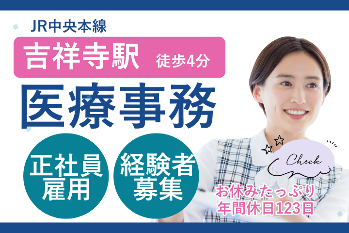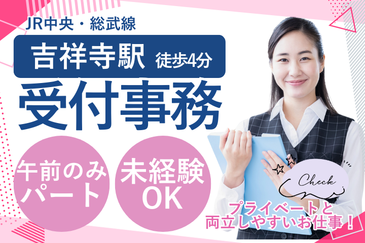 【吉祥寺駅徒歩4分】未経験歓迎!午前だけ週2~3日・扶養内OK|クリニック受付スタッフ募集