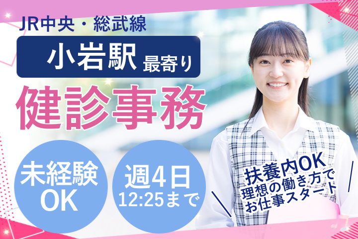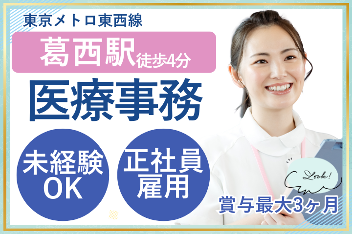 葛西駅徒歩4分*無資格・未経験からスタートOK/残業少&シフト柔軟!プライベートも大切にできる医療事務