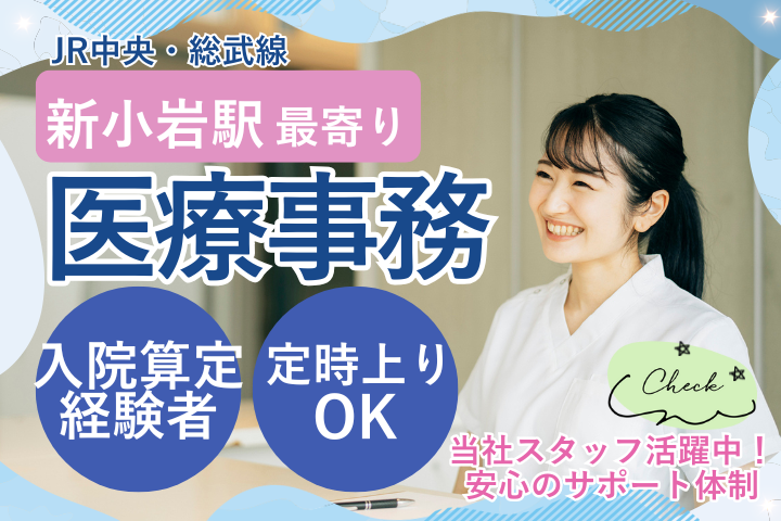 【新小岩駅】経験を活かしてお仕事スタートしませんか?江戸川区の地域で信頼される総合病院での医療事務のお仕事です?彡