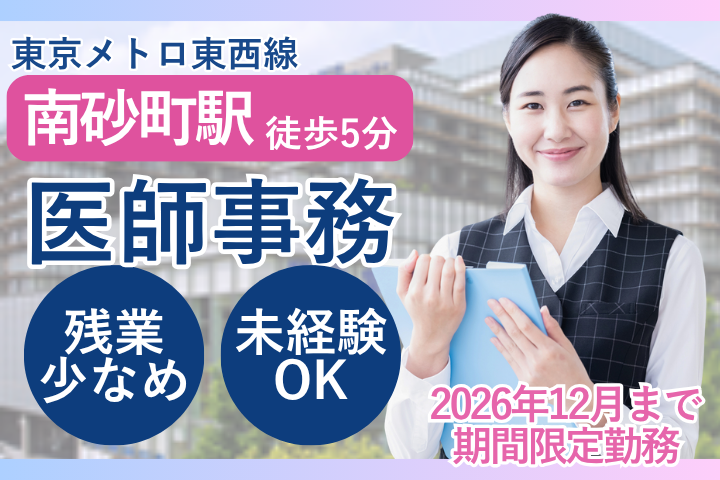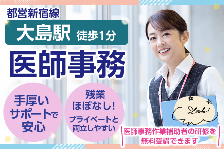【南砂町駅徒歩5分】土日祝休みもあり&残業ほぼナシ★事務職経験活かす!医師事務【産休代替】