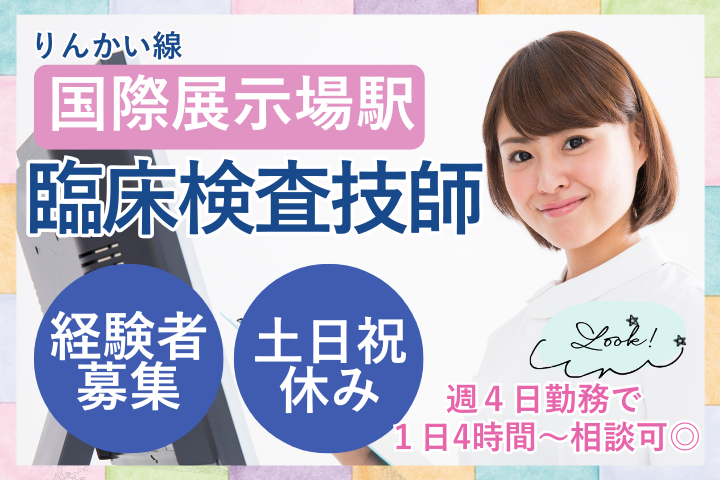 【国際展示場駅3分】総合病院で臨床検査技師募集*平日午前or午後のみ・残業ほぼなし・ブランクOK!