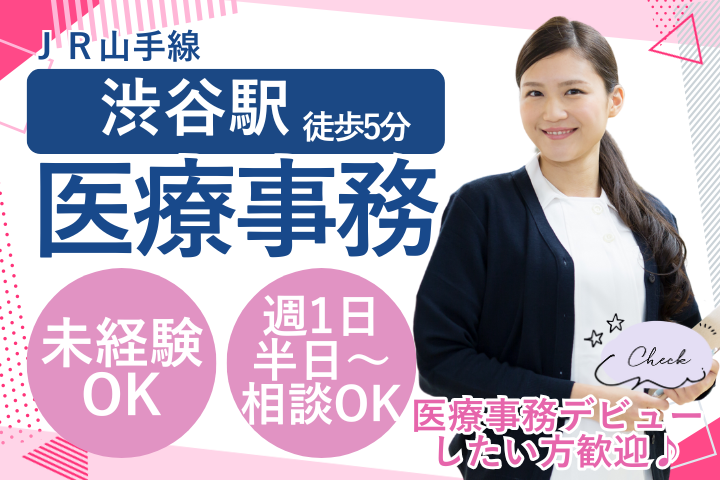 【渋谷駅チカ】未経験・無資格OK!週1日~扶養内歓迎|クリニック医療事務パート募集