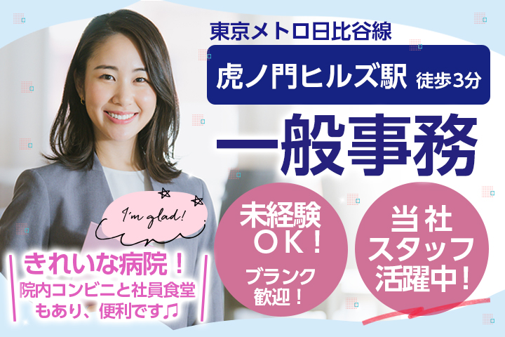 【虎ノ門ヒルズ駅徒歩3分】未経験から始める病院事務★土日祝休&社食・福利厚生充実