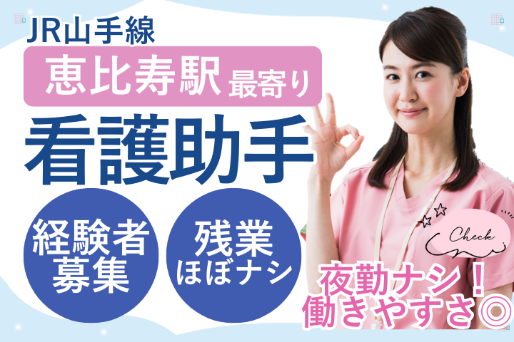 【恵比寿駅】経験活かせる病棟看護助手/17時または17時半まで・残業ほぼなし&福利厚生充実♪