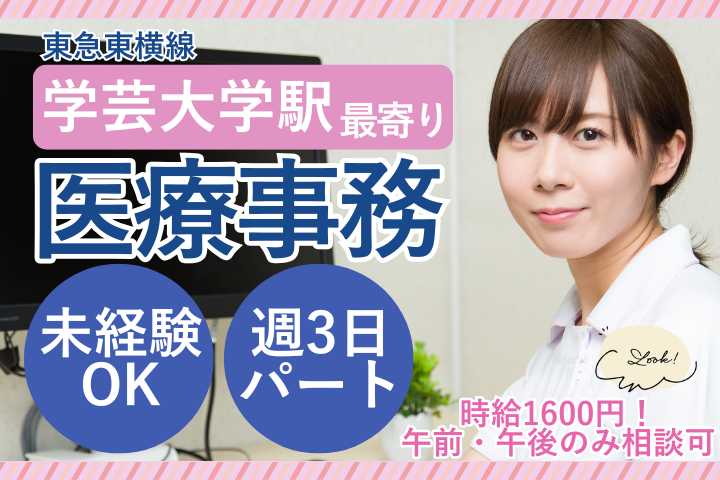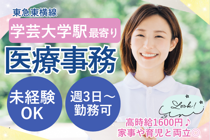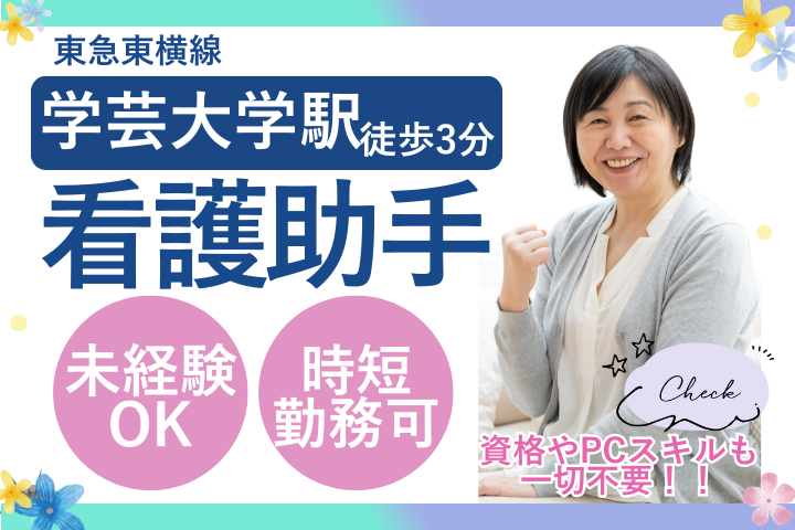 【学芸大学駅徒歩3分】扶養内OK・未経験歓迎◇西條クリニック鷹番の看護助手・PCスキル不要&残業ほぼなし!