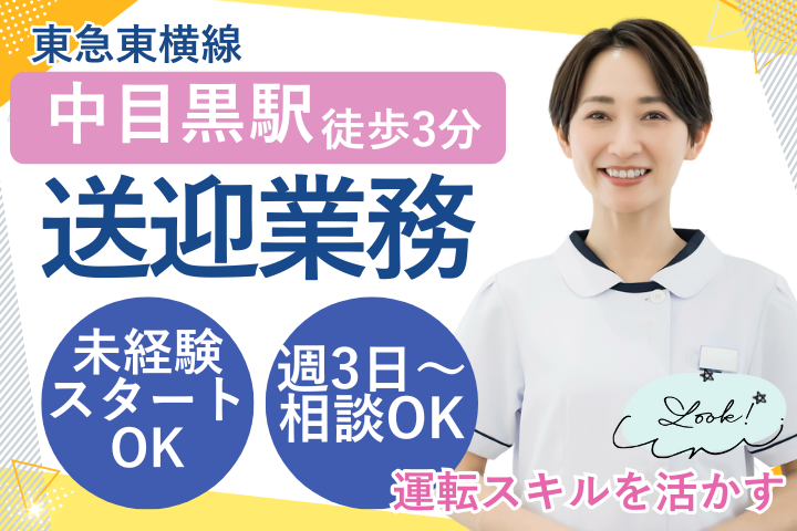 【中目黒駅チカ3分】未経験OK!50代・60代も活躍中|患者さま送迎ドライバー|週3日~扶養内◎賞与・食事補助あり