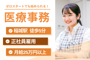 【稲城駅徒歩5分】未経験から正社員へ/地域密着クリニックの医療事務*残業少なめ&賞与あり