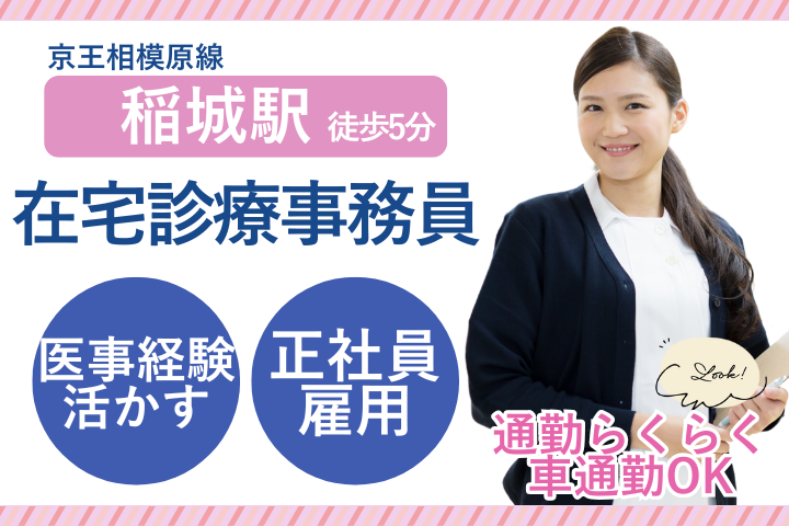 【稲城駅徒歩5分】地域密着クリニックで医療事務経験を活かす/正社員・車通勤OK・賞与あり