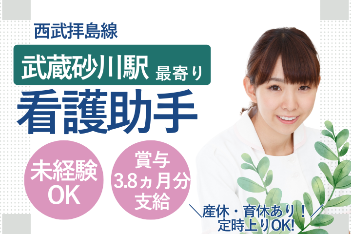 【ミドルシニア歓迎★】未経験から医療業界で正社員へ!賞与・手当充実&夜勤も選択可/西武拝島線・武蔵砂川駅徒歩圏