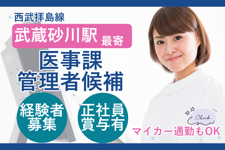 【武蔵砂川駅徒歩10分】医事課管理者候補募集◆経験を活かして安定の正社員&賞与3.8ヶ月*ブランクOK・50代活躍中