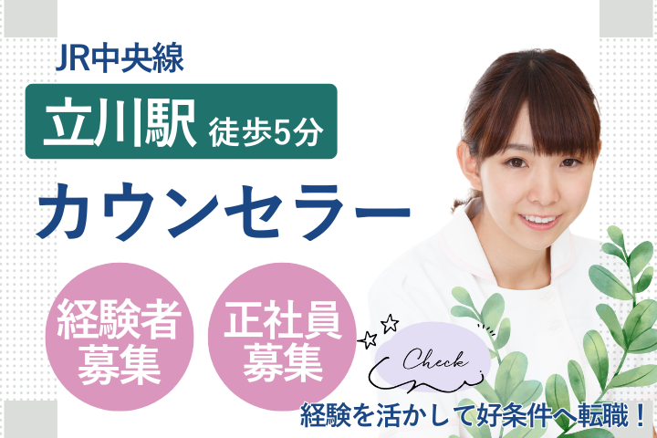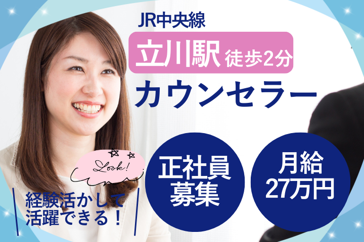 【立川駅徒歩2分】経験活かして活躍できるカウンセラー*年間休日120日&残業ほぼなし◎賞与ありの正社員募集!