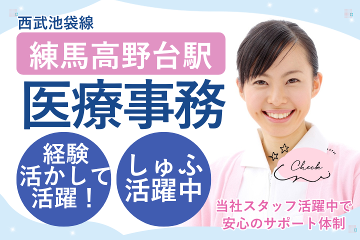 【練馬高野台駅4分】未経験から始める医療事務★週休2日&賞与5ヶ月分◎福利厚生充実♪