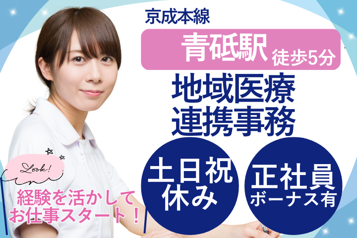 【青砥駅徒歩5分】土日祝休み×年間休日120日◎経験活かせる地域医療連携事務◇正社員募集中