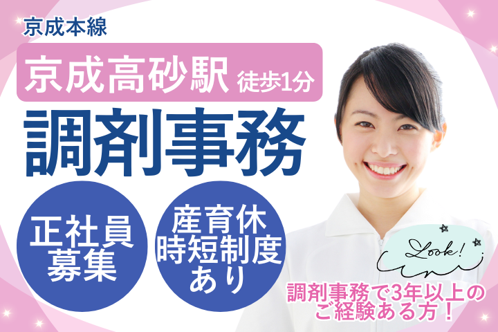 アップル薬局 高砂店の求人/葛飾区/調剤事務/正社員