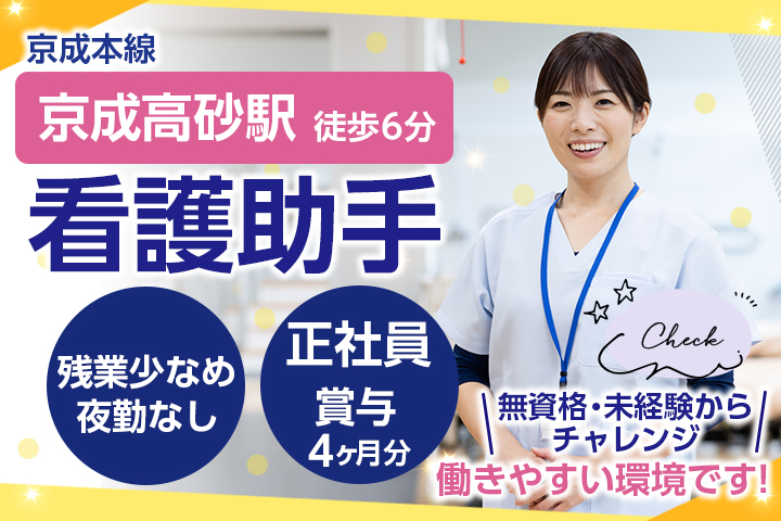 40代もチャレンジ歓迎!京成高砂駅チカ6分*資格不問・未経験からステップアップ◆病棟看護助手・正社員