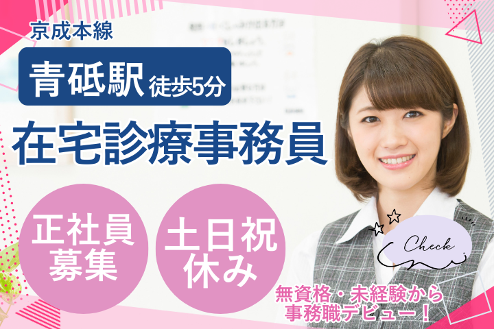 【青砥駅徒歩5分】未経験から始められる在宅診療事務★土日祝休み・年休120日・安定の正社員採用!