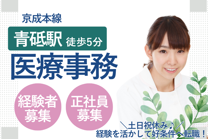 【青砥駅徒歩5分】経験を活かして安定正社員!基本土日祝休み&年休120日で働きやすい医療事務