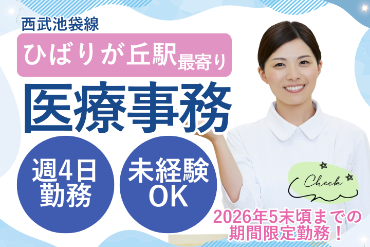 【ひばりヶ丘駅8分】未経験歓迎の医療事務/水色制服でおしゃれに働く♪週4日・残業ほぼなし&休日充実◎