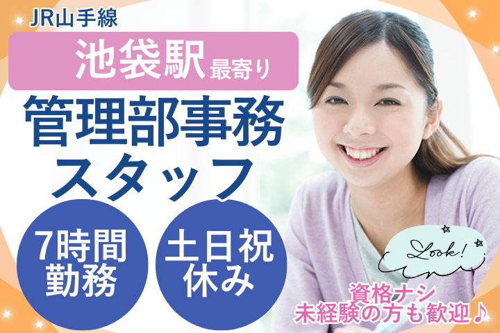 \未経験歓迎/池袋10分◎一般事務スタッフ募集*土日祝お休みでプライベートも充実!
