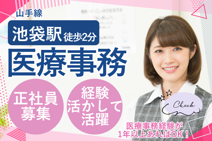 池袋駅前内科・皮膚科クリニックの求人/豊島区/医療事務(受付・クラーク)/正社員