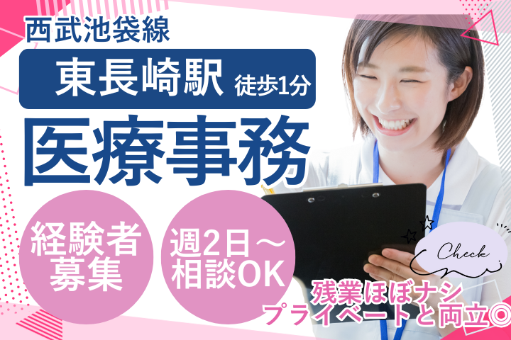 【東長崎駅徒歩1分】週2日~OK*経験者歓迎!40代活躍中!医療事務パート/昇給あり☆