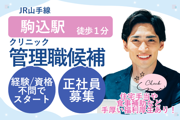 駒込駅徒歩1分*未経験OK!賞与&住宅手当・食事補助あり|20代~30代活躍中|クリニック管理職候補