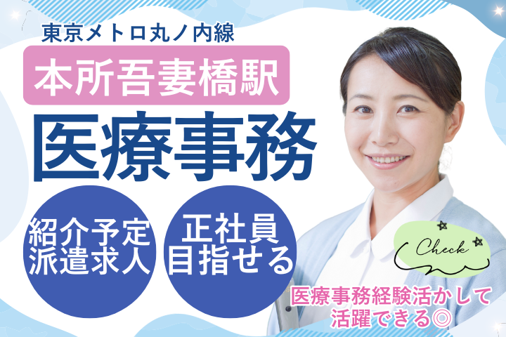 【本所吾妻橋駅13分】資格不問&40代女性活躍中◆派遣から正社員を目指せる医療事務♪