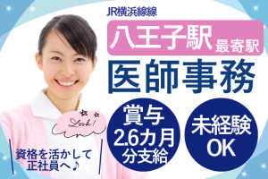 八王子駅徒歩10分◎未経験から始められる医師事務補助/賞与・年間休日125日で安定の正社員採用!