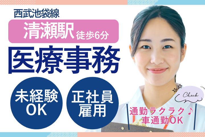 【清瀬市】未経験OK&女性スタッフ活躍中!正社員・賞与ありの医療事務☆日祝休みでプライベートも充実