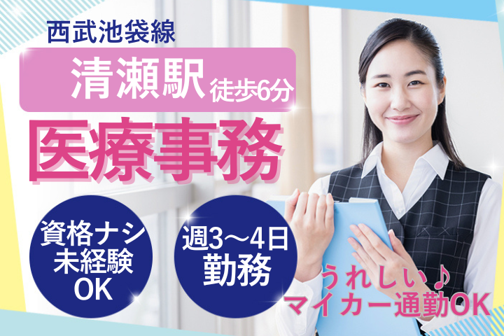 【清瀬市】未経験OK家庭との両立バッチリの医療事務☆清瀬駅から徒歩6分!