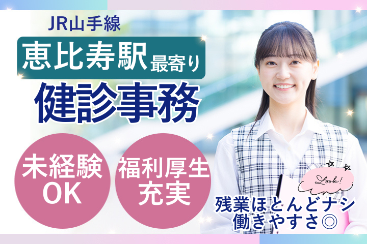 【恵比寿駅徒歩10分】未経験OK!健診センター受付/残業ほぼなし&福利厚生充実♪