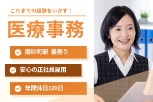 高野駅から徒歩2分*経験者歓迎の医療事務|年休114日&賞与ありで安定勤務!