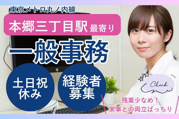 【本郷三丁目駅から徒歩10分】土日祝休み&残業少なめ◎大学病院で医療事務経験を活かせる事務★