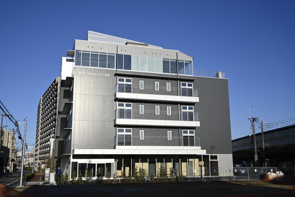※おうちにかえろう。病院は120床の入院のみお受入れしており、外来はありません。一般病院とは異なりお洒落なホテルのようなたたずまいです。