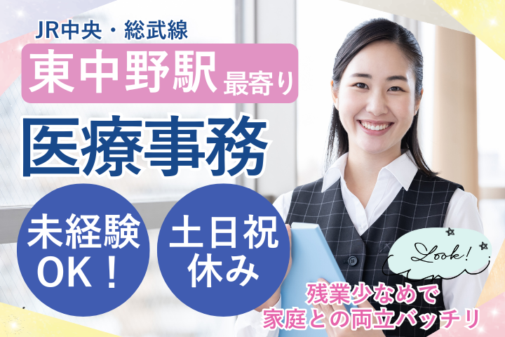 中野区・駅近のクリニックで医療事務スタッフ募集!