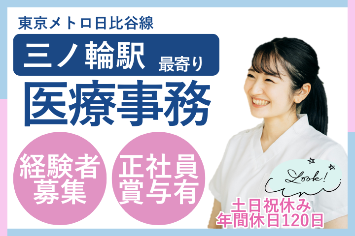 【三ノ輪駅徒歩8分】経験者歓迎!土日祝休み&年間休日120日★医療事務スタッフ募集/正社員・賞与3ヶ月支給◎